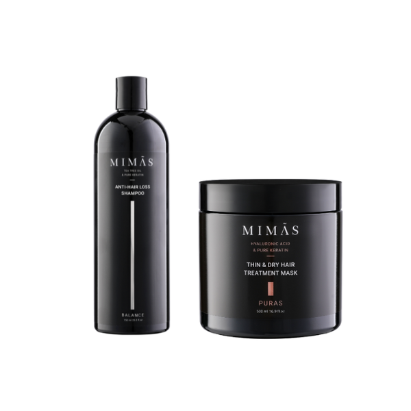 מסכת הזנה ללא מלחים לטיפול בשיער יבש, דק, דליל וחסר נפח. מסייעת בחיזוק סיב השערה מהשורש ועד לקצוות ובהפחתת נשירה כתוצאה משבירת שיער. מיועדת לשיער עדין וחלש, הזקוק לשיקום, לחיזוק מיידי ולעיבוי מראה השערה. מסכה טיפולית לשיער דק עד רגיל של מימאס מכילה רכיבי הזנה עדינים התורמים ליצירת נפח, ברק, רכות וגמישות. הפורמולה הייחודית מועשרת בחומצה היאלורונית וקרטין טהור. החומצה ההיאלורונית מסייעת בספיחת לחות לתוך תא השערה, מסייעת ביצירת אפקט אנטי פריז, מחזקת את סיב השערה ושומרת על גוון השיער לאורך זמן. הקרטין הטהור מצפה את השערה בשכבת הגנה וממלא פגמים שנוצרו במבנה השערה לאורכה.