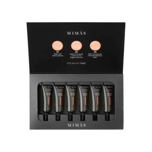 הכירי את הפתרון המקצועי לשיער יבש ופגום. אמפולות השיקום של מימאס משלבות חומצה היאלורונית וקרטין טהור לטיפול ממוקד בשיער שעבר תהליכי החלקה, צביעה או הבהרה.